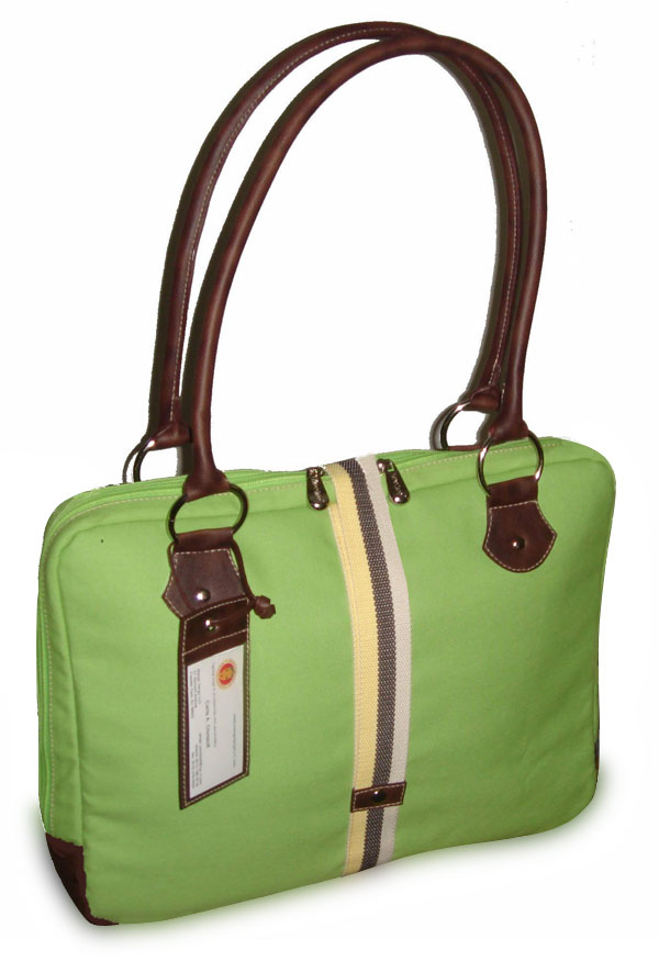 Portfolio Laptop Bag - Green Apple Canvas with Faux Leather Trim