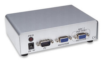 - Duplicates a video signal for 2 VGA outputs - 150 MHz signal bandwidth - HD 15 connections - Ideal for up to 15" monitors