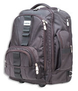 The MANHATTAN Matterhorn Rolling Notebook Backpack smoothly navigates through airport and train terminals and across pavement with style and ease using a two-position telescoping handle and heavy-duty, recessed inline skate wheels. When duty requires, concealed shoulder straps quickly convert the rolling bag into a comfortable, lightweight backpack. The zippered main compartment opens wide to reveal a roomy interior that can stow clothing, gear and mobile computing accessories for a quick business trip or overnight stays. A padded computer compartment accommodates most notebook computers with widescreens up to 17