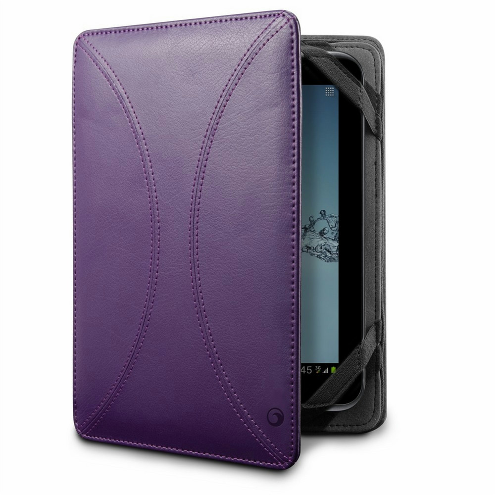 This attractive case is designed to fit 7" tablets. The case allows the device to stand vertically or horizontally.