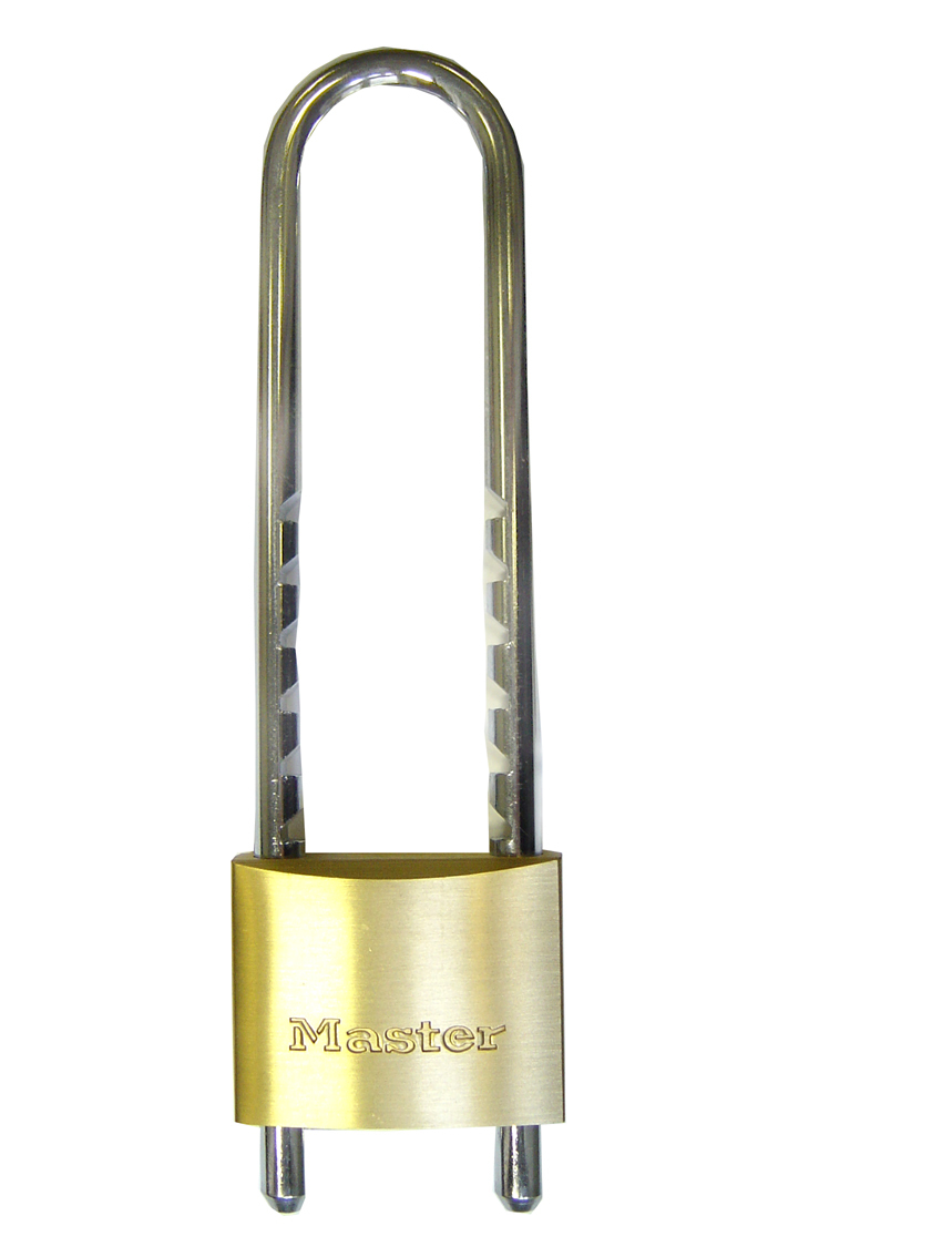 The Master Lock No. 1950EURD Solid Brass Padlock features a 50mm wide solid brass lock body that is strong, durable and resists corrosion. The 8mm diameter shackle can be adjusted from 60mm to 150mm long for application flexibility; and is made of hardened steel, offering extra resistance to cutting and sawing. The 5-pin cylinder prevents picking and the dual locking levers provide resistance against prying and hammering. The Limited Lifetime Warranty provides peace of mind from a brand you can trust.
