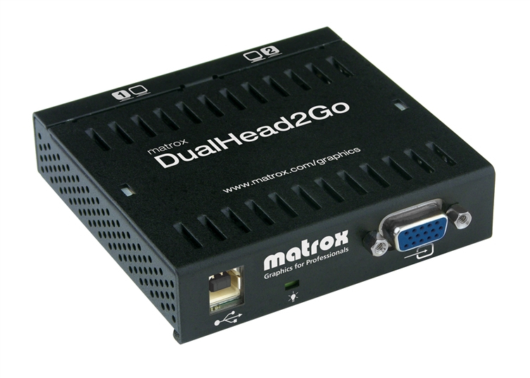 Matrox DualHead2Go is an external multi-monitor upgrade that adds up to two monitors to your notebook or desktop computer. Ideal for business and professional users looking to increase their productivity with a dual monitor setup, this small box lets you run different applications on each monitor or view one application across two monitors. DualHead2Go is available in DisplayPort, Digital, or Analog Editions.