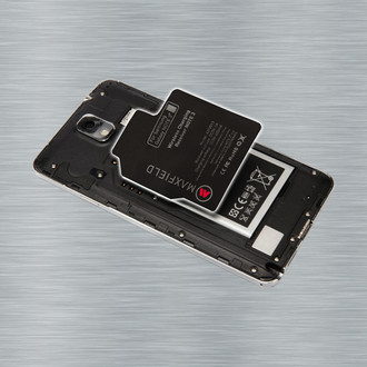 The RECEIVER allows you to charge the battery via induction. Because the Samsung smartphones Note 2, NOTE 3, S3, S4, S4 NFC and S5 are already prepared from factory for inductive charging they can be quickly and easily upgraded with this Maxfield accessoire. Simply fix the RECEIVER at the given position in the Smartphone and you can load your Samsung device with a Maxfield WIRELESS CHARGING PAD.