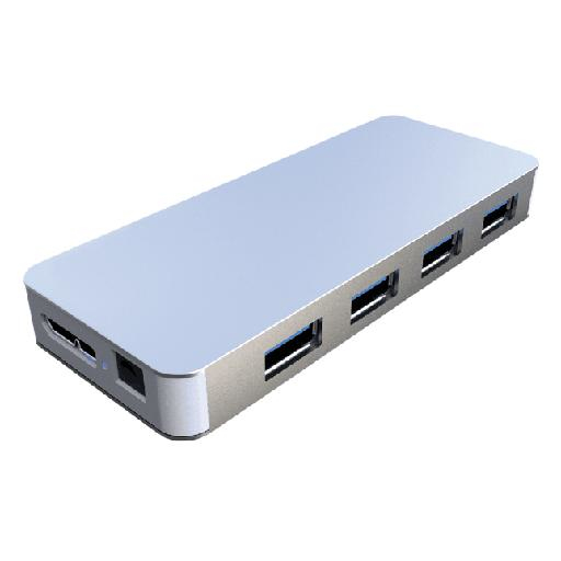 MCL USB3C-H104. Host interface: USB 3.0 (3.1 Gen 1) Type-A, Hub interfaces: USB 3.0 (3.1 Gen 1) Type-A. Data transfer rate: 5000 Mbit/s. Colour of product: Silver, Material: Aluminium. Width: 13.5 cm, Depth: 6.5 cm, Height: 19.5 cm