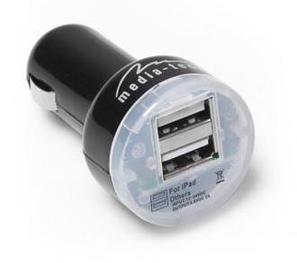 Dual car USB charger MT6217 is an universal car charger, which is perfectly suited for powering majority of electronic devices equipped with USB port, such as mobile phones, navigations, media players, tablets and also Apple mobile devices via cables included in set of those devices.