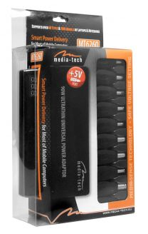 90W UNIVERSAL NOTEBOOK POWER ADAPTOR PRO MT6260 is ultrathin with the most modern MEDIA-SENSE technology compatible with most of mobile computers.