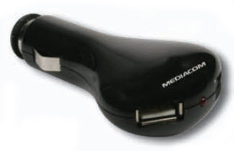 Mediacom Dual USB Car Charger. Charger type: Auto, Charger compatibility: Mobile phone, MP3, PDA, Power source type: Cigar lighter. Colour of product: Black. Input voltage: 12 - 24