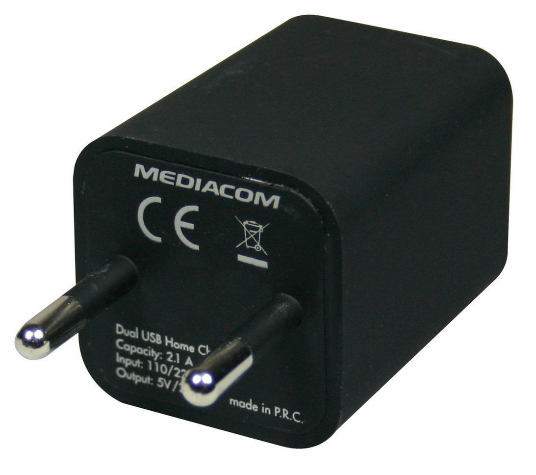 Mediacom M-2USBHRC. Charger type: Indoor, Charger compatibility: Universal, Power source type: AC. Colour of product: Black. Input voltage: 110 - 220, Output voltage: 5 V, AC adapter output current: 2.1 A