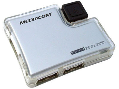 Mediacom M-HU2SR. Hub interfaces: USB 2.0. Colour of product: Silver, Transparent