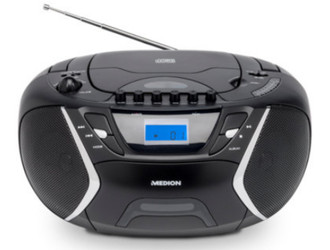 Medion E65073. Tuner type: Analog, Supported radio bands: AM, FM. Disc types supported: CD-R, CD-RW. Cassette playback modes: Repeat. RMS rated power: 2 W. Display type: LCD