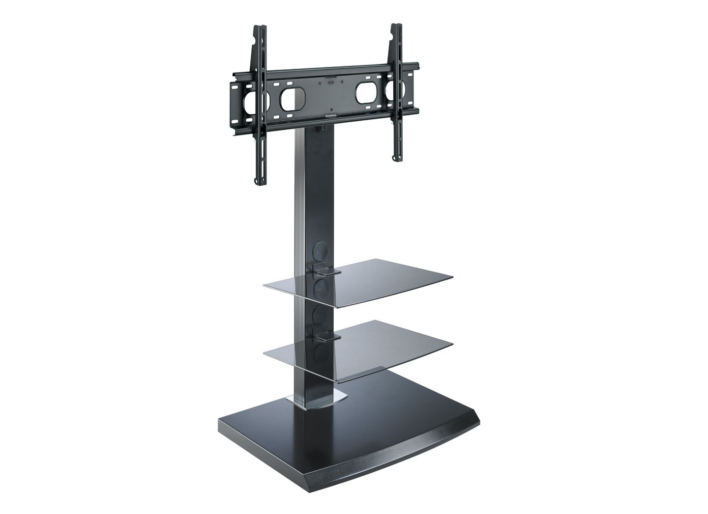 Meliconi Sky 200. Colour of product: Black, Type: Portable flat panel floor stand. Minimum screen size compatibility: 81.3 cm (32"), Maximum screen size compatibility: 109.2 cm (43"), Maximum weight capacity: 45 kg. Tilt angle: -40 - 40°, Number of wheels: 4 wheel(s). Width: 670 mm, Depth: 480 mm, Height: 1099 mm. Screen size compatibility: 812.8 - 1092.2 mm (32 - 43")