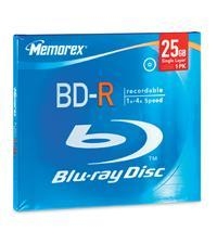 Memorex Blu-ray discs use state-of-the-art blue-violet laser technology to support high-definition television recording with excellent HD broadcast quality. Featuring storage capacities up to 5 times larger than today's standard DVD's and fast data transfer rates, Blu-ray is ideal for consumers interested in recording TV shows and sporting events in crystal-clear, high-definition quality. Blu-ray is also great for many other high capacity data storage needs. Offering single-layer storage capacity of 25 GB, Blu-ray discs dwarf today's standard 4.7 GB DVDs or 8.5 GB double-layer discs.