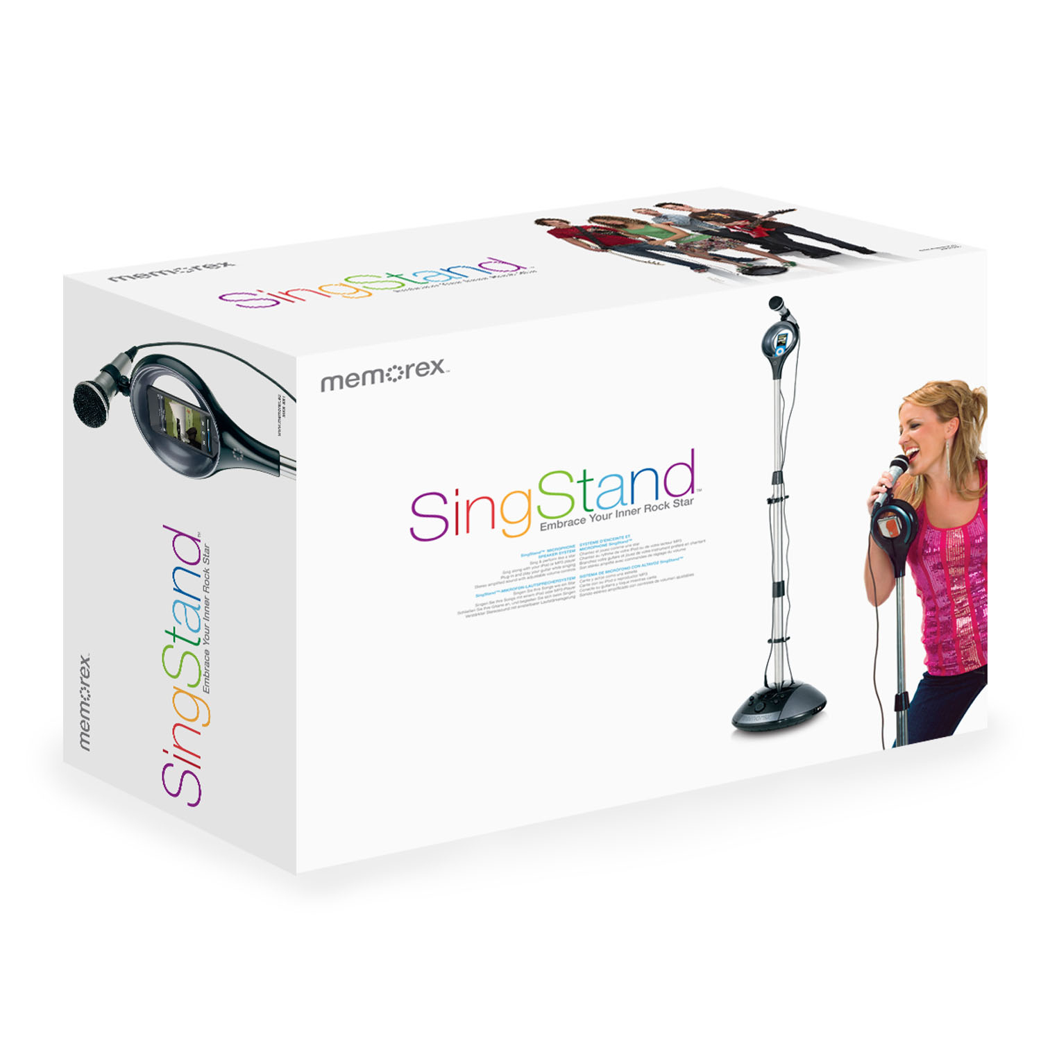Memorex SingStand™ is revolutionizing the way you interact with music--now you can be a star! Memorex SingStand microphone speaker system allows you to sing along with music from iPod or any MP3 device with a headphone jack. Impress your friends and family with voice control and echo effects, giving them a stellar vocal performance, then connect your own musical instruments for a truly amazing show. The full-range speakers, built into the base, offer quality sound, and if you feel like sharing the spotlight, SingStand comes equipped with dual microphone inputs for duet performances.