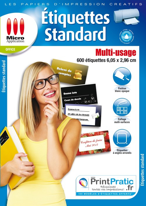 Micro Application 5057. Colour of product: White, Print technology: Inkjet. Label size: 60.5 x 29.6 mm. Paper dimensions: 210 x 297 mm
