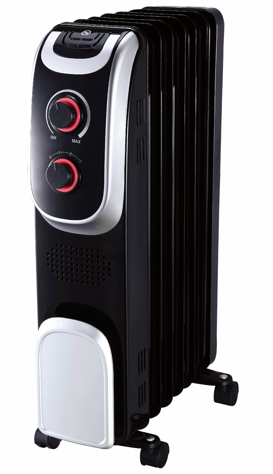 Oil Heater, 1500W, 230-240V, 50Hz, Thermostat, Overheat, Black/Silver