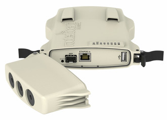 The NetMETAL is equipped with powerful 720Mhz CPU, 128MB RAM, one Gigabit Ethernet port, 802.11ac wireless, one SFP cage, USB, RP-SMA connectors for external antennas and RouterOS L4 license.
