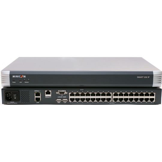 The Smart 216 IP, also available with 32 ports - Smart 232 IP, enables one local and two remote users, access and control of up to 16 servers. In addition, two remote users can operate serial sessions for controlling serial devices such as routers, managed network switches or PDU's. These rack-mountable, 1U sized switches feature Minicom KVM over CAT5 technology that directly connects the switch to each computer in the server room, eliminating cable clutter and providing up to 30m/100ft of distance between server and switch. The Smart 216 IP has a built-in web server enabling two remote users seamless access to target servers via a single IP address.