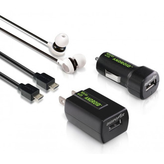 The SP-PSKAND is a five piece power and sound kit designed for use with Android smartphones. This convenient kit ensures you have the ability to charge whether you are at home or on the road, just connect your device to either charger with the included USB mini or micro cables. Enjoy listening to your favorite songs with the included 3.5mm stereo earbud, guaranteed to provide crisp, clear sound with deep base.