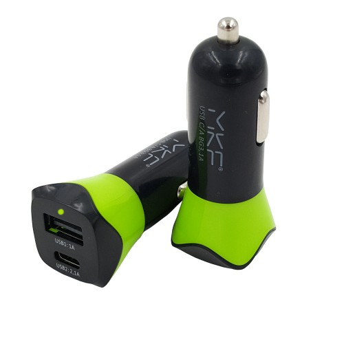 MK Floria MKF-USB C/A BG3. Charger type: Auto, Charger compatibility: Universal, Power source type: Cigar lighter. Colour of product: Black, Green. Input voltage: 12 - 24, Output voltage: 5 V, Output current: 2100 mA
