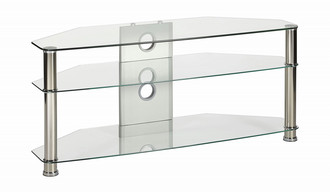 Clear glass and chrome legs is a classic combination of this modern design. Many of the new large flat screen LCD LED televisions now have silver with chrome touches therefore the MMT-CL1150 is a great TV stand to compliment your flat screen