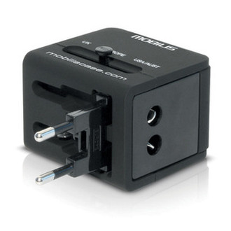 Worldwide Travel Adaptor 2 USB, EU/UK/US/AU, 100-240V, 2x0.5A, Black, 94g