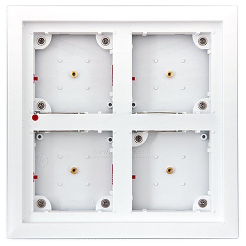 Suitable for: 4 modules, outdoors Integrated electromagnetic theft protection Includes special key for module unlocking, housing gasket and installation material Dimensions: 233 x 233 x 18 mm (W x H x D) Color: Silver