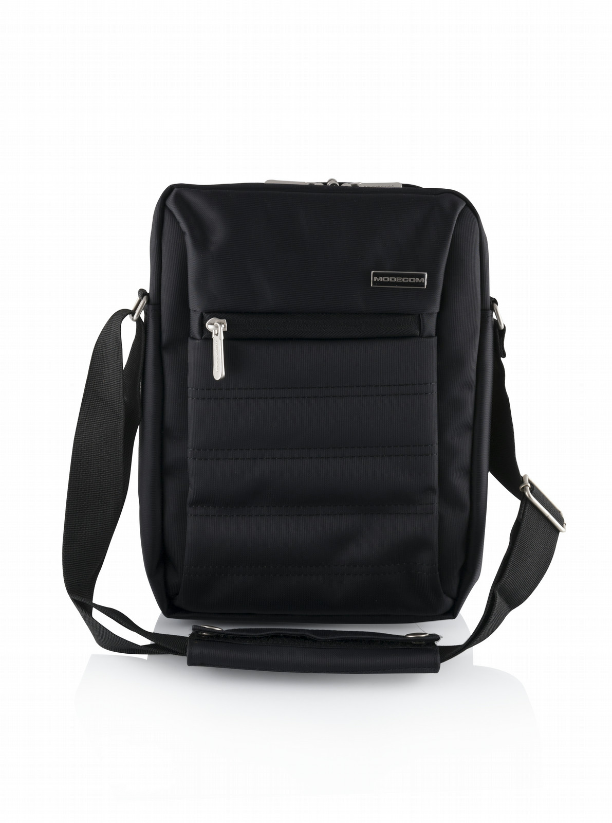 MODECOM TRADE TAB bag is also characterized by the functional system of the space organization, which makes possible instantly locate required item, without the need of wasting your valuable time. The main chamber of the bag is divided by the special tab in two separate compartments: one for tablet, and second for documents. Moreover, tab which separates those compartments, was made of anti-resistant materials, that protects tablet against accidental damages, scratches or other type of mechanical damages. On the front part of TRADE TAB is located zipper pocket for documents and accessories, such as pens, cell phone, smartphone or wallet. Moreover, on the back part of bag is placed additional compartment for tablet accessories, such as battery charger, etc.