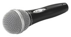 Dynamic microphone, for stage, speech and vocals. Including microphone holder, cable and plastic case.