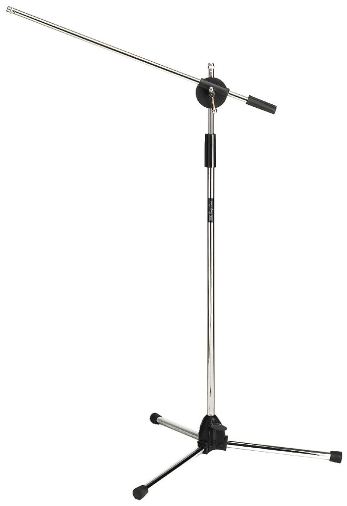 <b>Microphone floor stand, with movable boom and shock-absorbing folding feet. Thread: 16 mm (⅝") and 9 mm (⅜").</b>