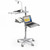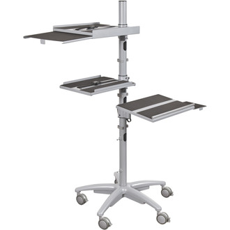 - Frame includes 3" locking casters on a stable star base, and three independently height adjustable equipment shelves.