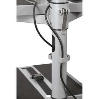 - Center post acts as a hub, allowing for the three included shelves to be positioned exactly where you need them. Cable management clips keep cords under control.
