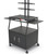 - Black powder-coated steel frame includes three storage shelves and 4" swivel casters (2 locking).