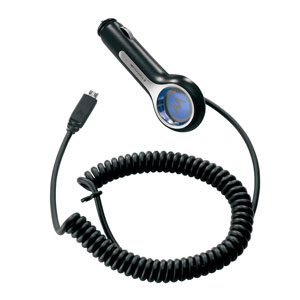 The High Performance Car Charger has a quality, durable coil cord for extendable reach and use. Small and lightweight for convenience, portability and storage. Fits most in-vehicle power port sockets. Unique and stylish Motorola lens illuminates when plugged into your vehicle's power socket. Provides power to your phone while simultaneously charging your phone's battery. A Motorola Original battery will be charged to 90% capacity within two to three hours.