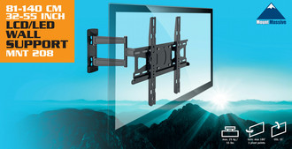If you want to watch your television from every angle in the room, the Mount Massive MNT 208 TV wall mount is perfect for you. Mount your 32-55 inch (81-140 cm) TV (up to 25 kg) on this full motion TV wall bracket and get the additional ability to tilt your TV up to 15 degrees forwards.