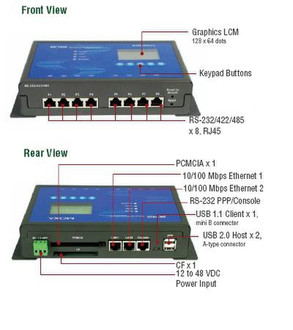 The UC-7410/UC-7420 RISC-based ready-to-run Linux and WinCE computers are designed for embedded applications. The computers feature 8 RS-232/422/485 serial ports, a PCMCIA interface for wirelessLAN communication, CompactFlash, and USB ports for adding external memory.
