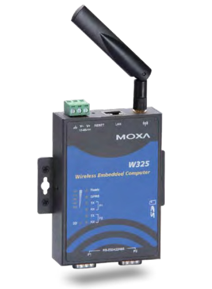 The 325 is an embedded Linux computer that features 2 software selectable RS-232/422/485 ports, 1 Ethernet port, and quad-band GSM/GPRS 900/1800/850/1900 MHz for cellular communication. In addition, the W325 comes with an SD socket for external storage expansion. The W325’s Linux OS runs on the MOXA ART 32-bit ARM9 processor, which provides a powerful and reliable platform for harsh, industrial environments. You will find these computers ideal for a variety of machine-to-machine applications, including data acquisition, protocol conversion, and remote device control and monitoring.