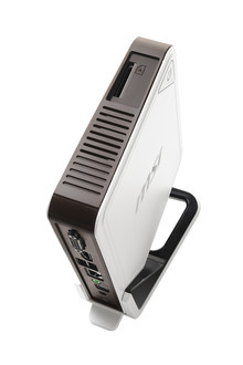 The Wind Box DC110 has elegant lines and a slim, lightweight chassis. It is just 191.8 mm (W) × 150.93 mm (H) × 34.94 mm (D) in size, and weighs only around 830 grams. The DC110's unique "snowboard" style base makes it easy to store and move around; this ultra-mini PC is perfect for both home and office use. Tests have confirmed that, in regular operation, the Wind Top DC110 maintains average power consumption that does not exceed 40W, less than half that of most conventional PCs.