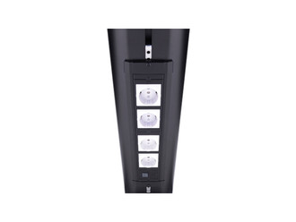 Based on 210cm (Reaching 235cm with its wheelbase) high pillar made out of durable aluminum, the possibilities for height adjustments are very good and it is possible to provide perfect viewing angle for both a sitting and a standing audience. There is a power rail built into each pillar, providing 220v power to the screens or peripheral. This makes installation and cable management an ease. This movable video wall solution creates a solution that can be used for presentations, trade shows, store or office entrances.