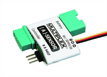 Measures currents up to 35 A. Fitted with the M6 connector system, the sensor is typically looped in between the battery and the consumer unit in order to measure the current of the electric power system. In future, if you activate the battery charge counter, (using a MULTImate or PC via program "Sensor DataManager”) you can forget using a timer when flying; instead you can fly according to the actual residual charge in the flight battery. The current sensor virtually equates to an electrical fuel gauge. The following can be activated and altered using the MULTImate, or using Sensor Data Manager on the PC: