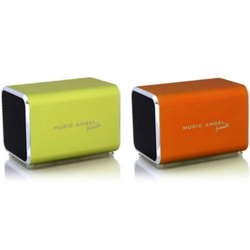 Music Angel Friendz is an easy to use portable speaker. It can be connected to all digital music equipment, provided that it has a 3.5 mm mini-jack output (headphone-port). This device is equipped with a high performance rechargeable battery that lasts up to 120 hours when fully charged!