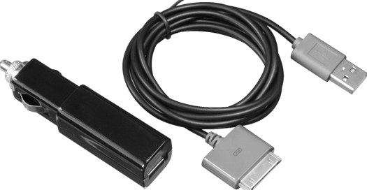 Car Charger USB plus USB to 30 pin Loose Sync Cable 1.5m 1A Black Straight Magic Apple