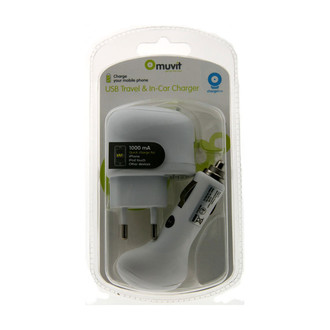 USB Charge Kit Rubber Coated (Car+Travel) White