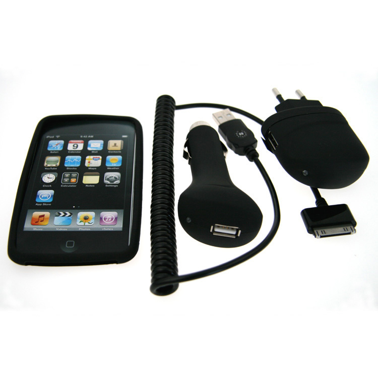 Muvit PACKIPODTOUCH3G. Charger type: Auto, Indoor, Charger compatibility: MP3, MP4, Power source type: AC, Cigar lighter. Colour of product: Black. Input voltage: 100 - 240