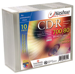 10-pack CD-R 700MB/80min. in slimcases. Speed: 52x