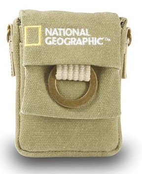 National Geographic camera cases are designed to hold and protect a digital point-and-shoot camera, cell phone, or mp3 player with media accessories. Carrying options include thick shoulder strap and secure belt strap connection. Dedicated flaps in the front pocket keeps batteries and media cards secure. Special connecting loops let you tie additional gear to the exterior of the pouch. Made of environmentally friendly hemp and cotton that has been treated for water resistance.