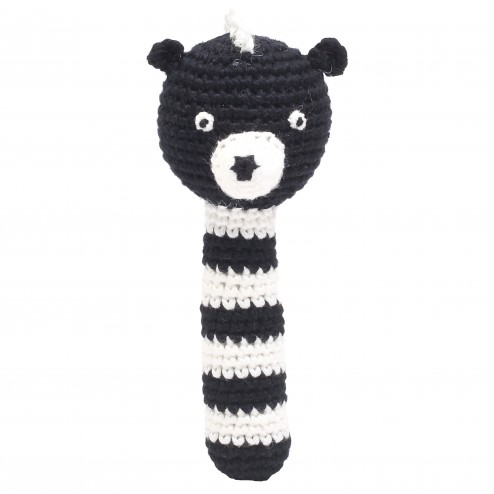 Sir Skunk, 14 cm Hand crocheted Oeko-Tex 100 certified (Confidence in Textiles) rattle stick.