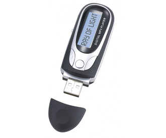 - LCD screen with multicolor backlight - Plugs directly to USB_no cable needed - Plays digital music (MP3, WMA) - Digital FM radio - Stereo earphones included - Power: Requires one "AAA" battery (not included)