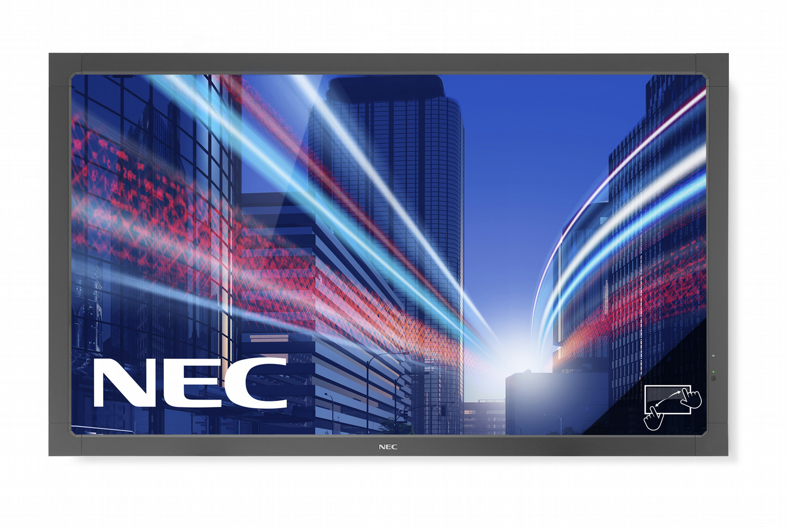 NEC MultiSync® V463-TM is the new multi-touch product of NEC’s V Series boasting 46" in size and delivering true multitouch support with up to 5 simultaneous touch points. Thanks to a unique anti reflective coating, reflections are reduced to a minimum which significantly increases the readability of the content shown. The OPS option slot for e.g. a slot-in PC helps to save space and does away with any cables including the USB cable external PC solutions may need.