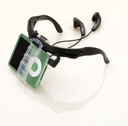 - Flexible iPod clips for different neck sizes