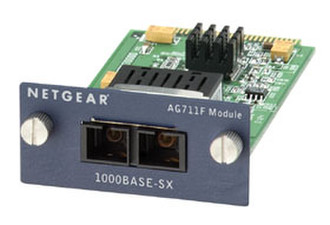Netgear AG711F Fiber Gigabit Module. Data transfer rate: 1 Gbit/s, Connectivity technology: Wired, Cabling technology: 1000BASE-SX. Colour of product: Grey